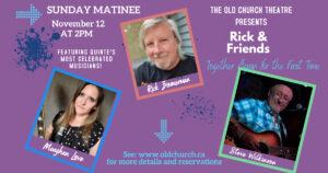 The Old Church Theatre reopens its doors after a winter break with a special performance by Rick Fines.  Get your Early-Bird-Priced tickets while you can!   Rick had a packed house for his concert in[...]